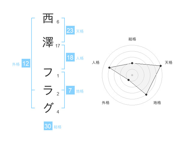 西澤 フラグさんの天格は23画の5点!