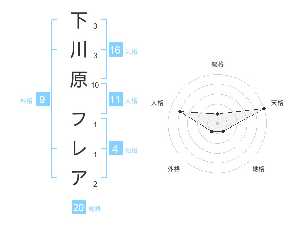 下川原 フレアさんを姓名の画数から五運を鑑定