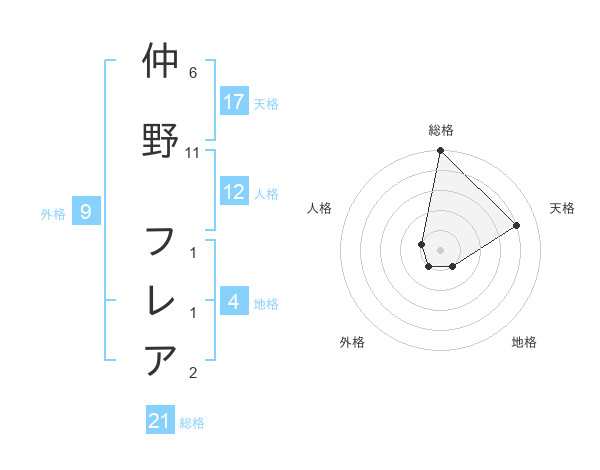 仲野 フレアさんの天格は17画の4点!