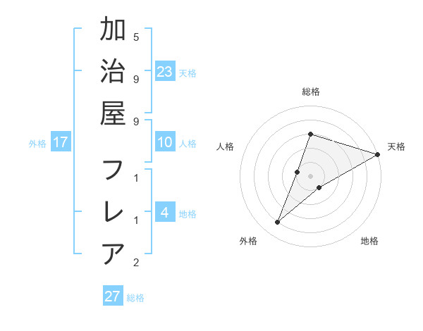 加治屋 フレアさんの外格は17画の4点!