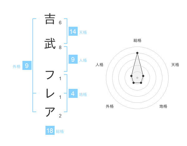 吉武 フレアさんの総格は18画の4点!