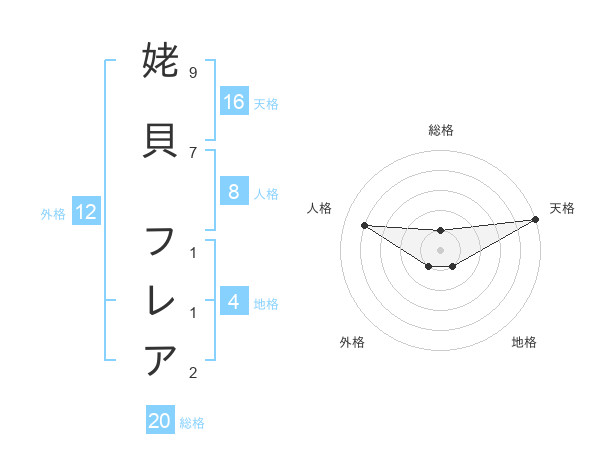 姥貝 フレアさんの総格は20画の1点!