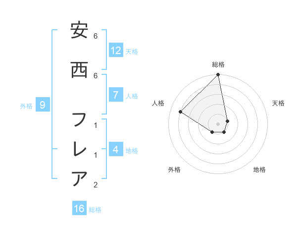安西 フレアさんの天格は12画の1点!