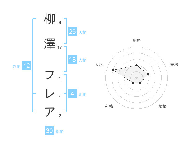 柳澤 フレアさんを姓名の画数から五運を鑑定