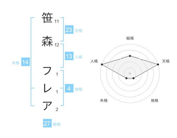 笹森 フレアさんを姓名の画数から五運を鑑定