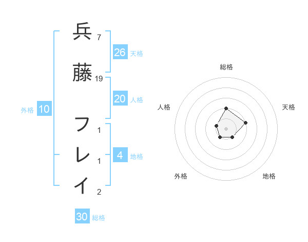 兵藤 フレイさんの天格は26画の2点!