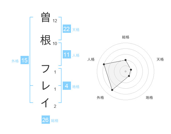 曽根 フレイさんを姓名の画数から五運を鑑定