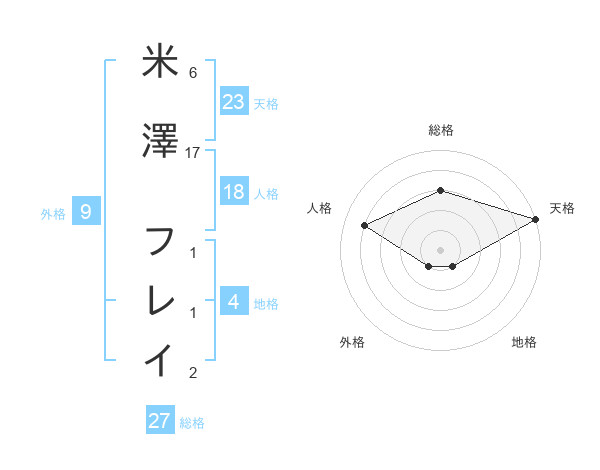 米澤 フレイさんを姓名の画数から五運を鑑定