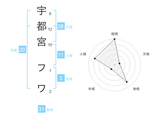 宇都宮 フワさんを姓名の画数から五運を鑑定
