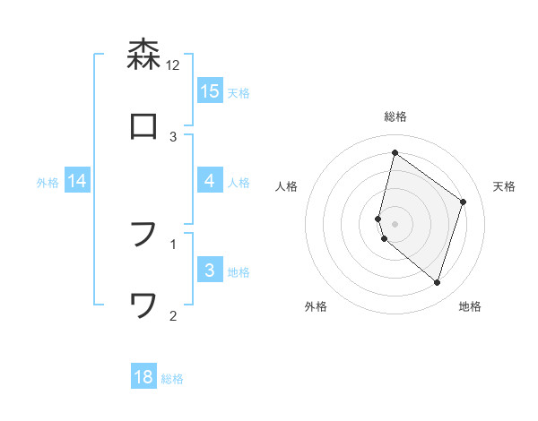 森口 フワさんの天格は15画の4点!