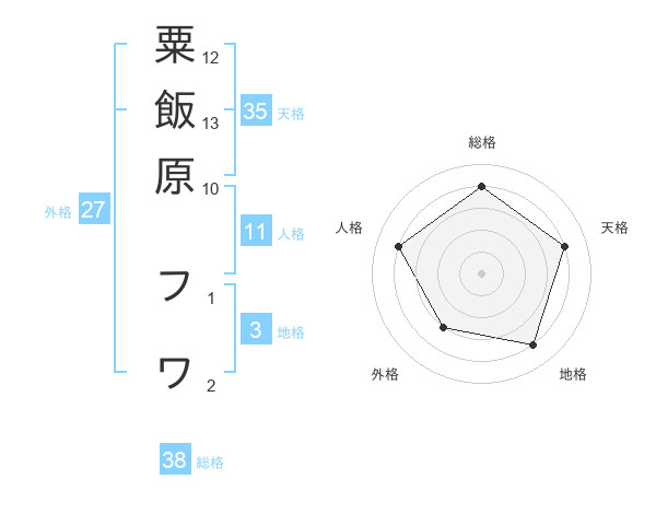 粟飯原 フワさんの総格は38画の4点!
