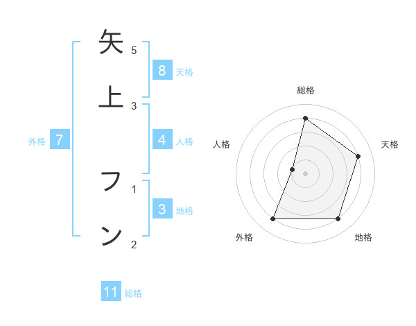 矢上 フンさんの天格は8画の4点!