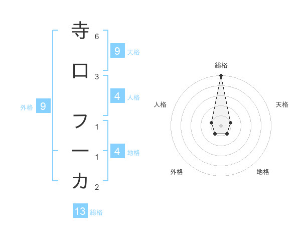 寺口 フーカさんを姓名の画数から五運を鑑定