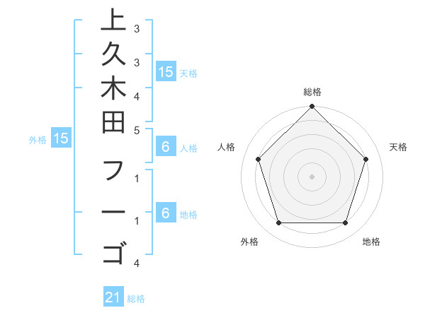 上久木田 フーゴさんを姓名の画数から五運を鑑定