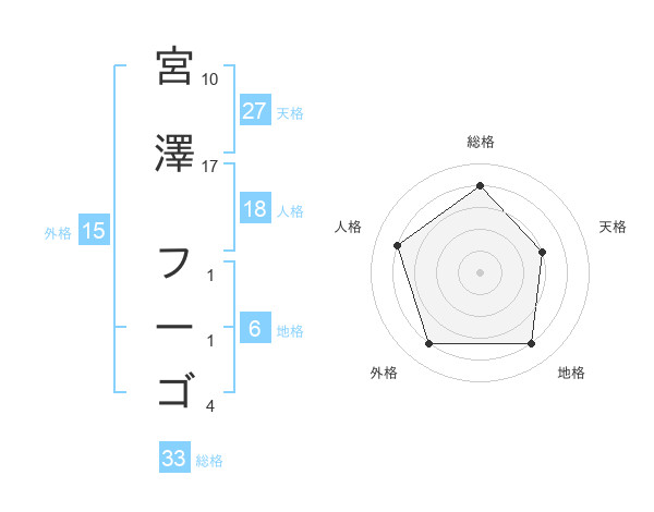 宮澤 フーゴさんを姓名の画数から五運を鑑定
