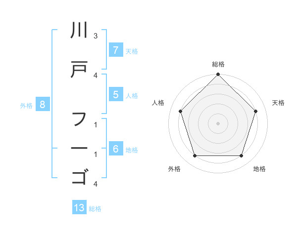 川戸 フーゴさんを姓名の画数から五運を鑑定
