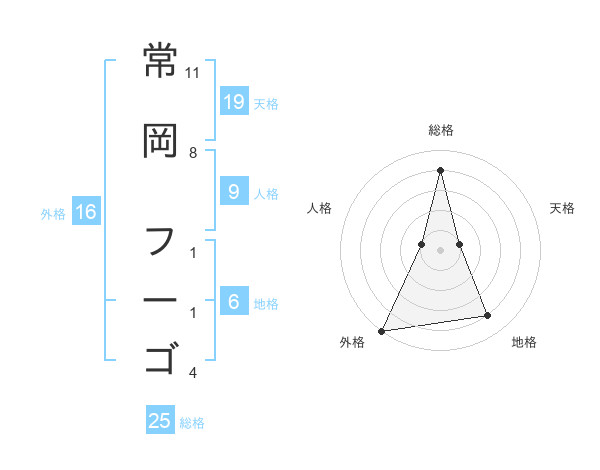 常岡 フーゴさんを姓名の画数から五運を鑑定