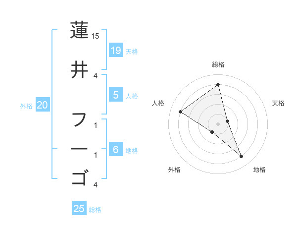蓮井 フーゴさんを姓名の画数から五運を鑑定
