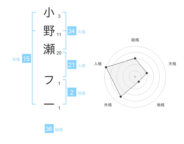小野瀬 フーさんを姓名の画数から五運を鑑定