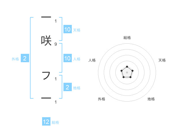 一咲 フ一さんを姓名の画数から五運を鑑定