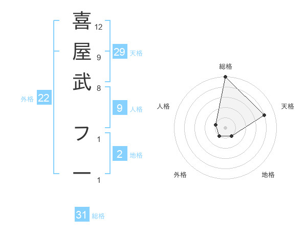 喜屋武 フ一さんを姓名の画数から五運を鑑定