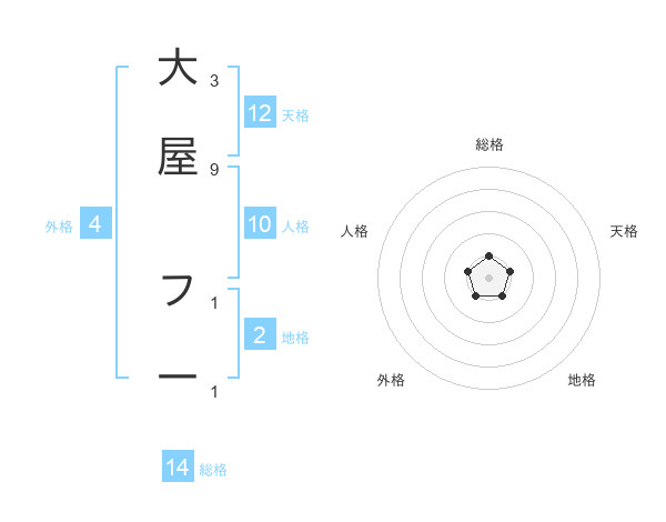 大屋 フ一さんを姓名の画数から五運を鑑定