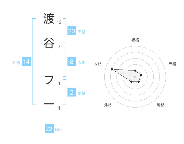 渡谷 フ一さんの総格は22画の1点!