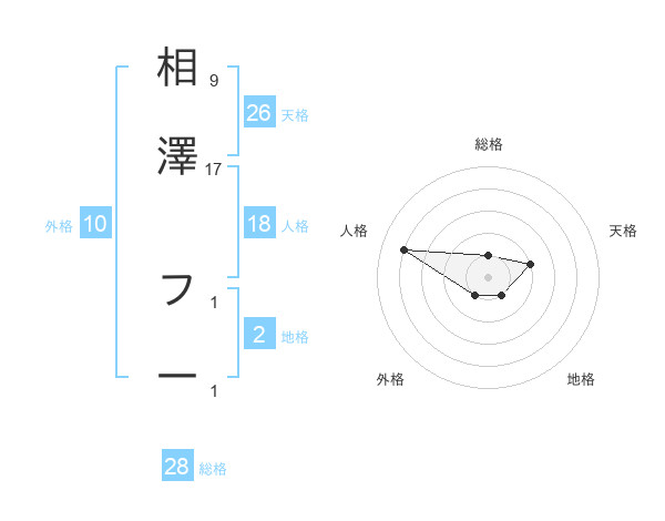 相澤 フ一さんを姓名の画数から五運を鑑定