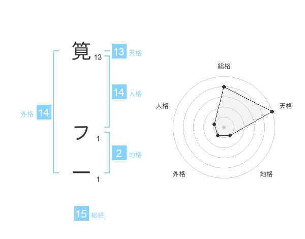 筧 フ一さんの天格は13画の5点!