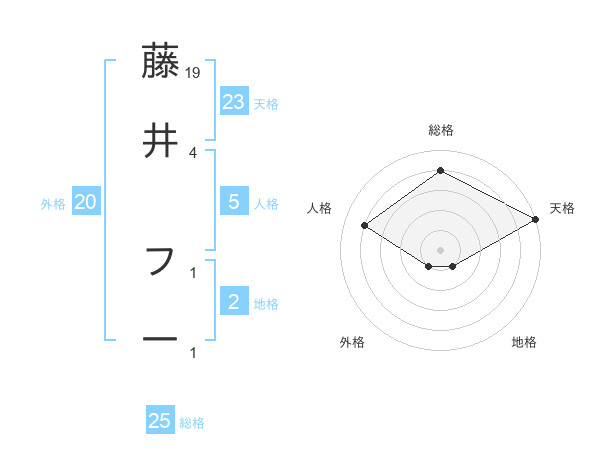 藤井 フ一さんを姓名の画数から五運を鑑定