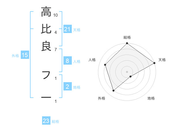 高比良 フ一さんの天格は21画の5点!