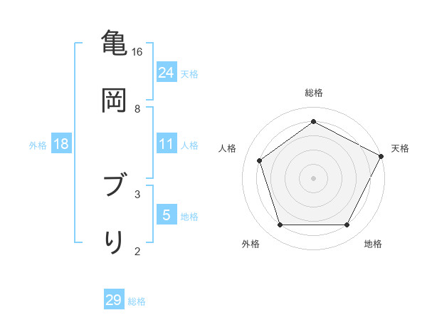 亀岡 ブりさんを姓名の画数から五運を鑑定