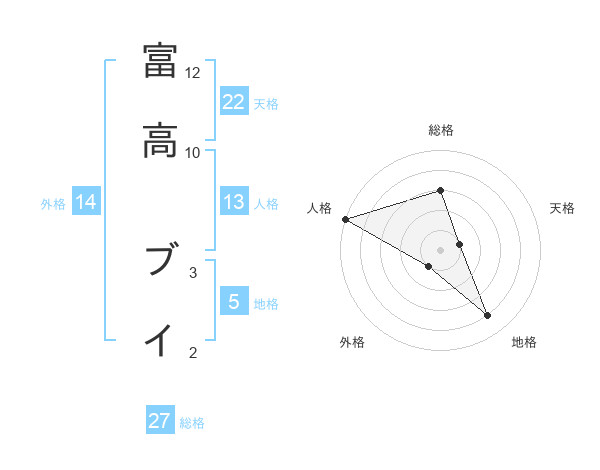 富高 ブイさんの天格は22画の1点!