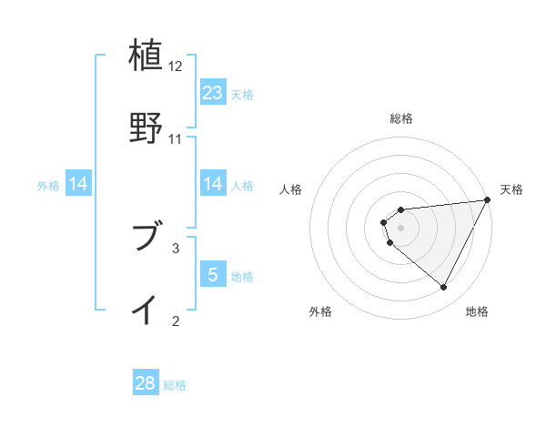 植野 ブイさんの天格は23画の5点!