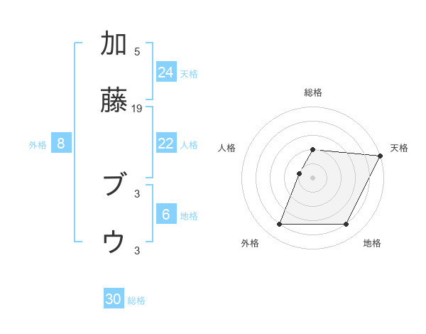 加藤 ブウさんを姓名の画数から五運を鑑定