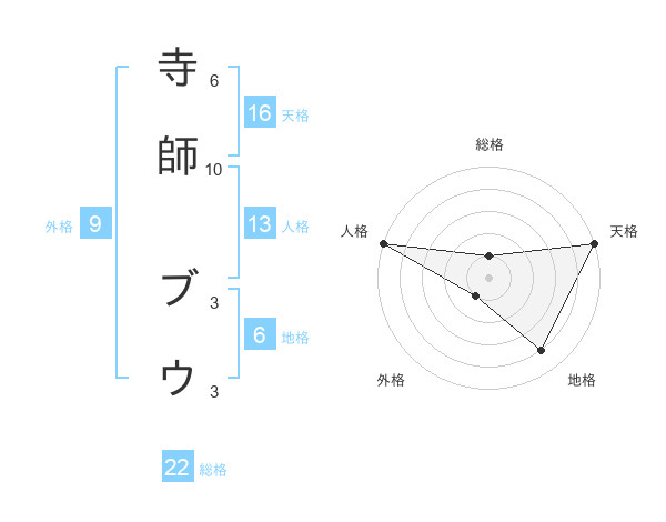 寺師 ブウさんの天格は16画の5点!