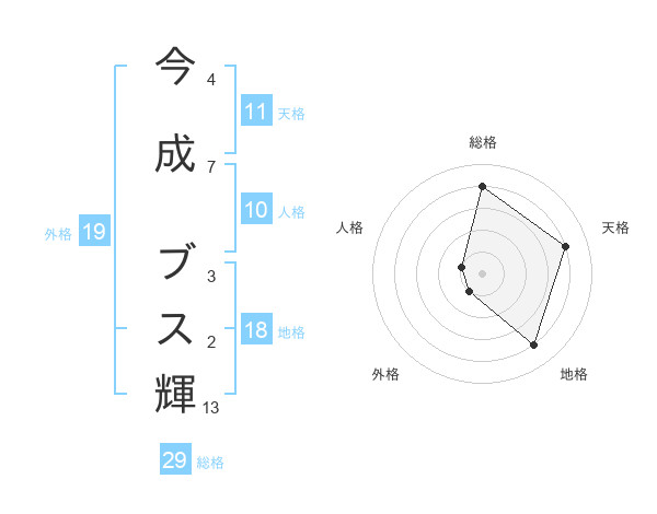 今成 ブス輝さんを姓名の画数から五運を鑑定