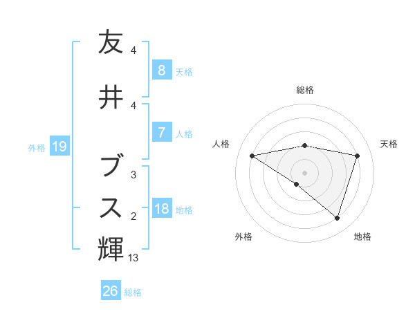 友井 ブス輝さんを姓名の画数から五運を鑑定