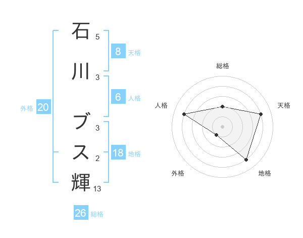 石川 ブス輝さんの総格は26画の2点!