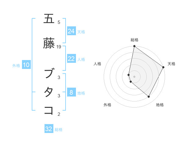 五藤 ブタコさんの総格は32画の5点!