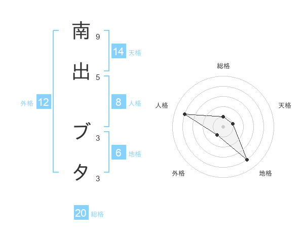 南出 ブタさんの総格は20画の1点!
