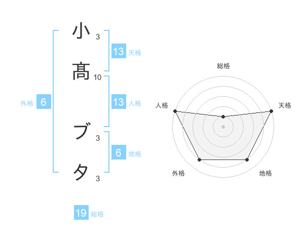 小髙 ブタさんを姓名の画数から五運を鑑定