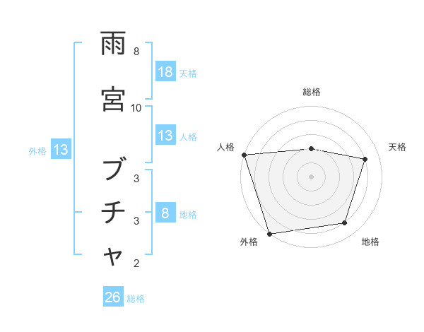 雨宮 ブチャさんを姓名の画数から五運を鑑定