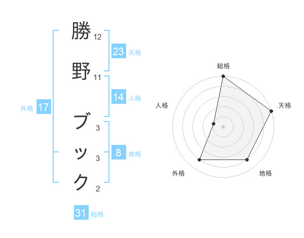 勝野 ブックさんを姓名の画数から五運を鑑定