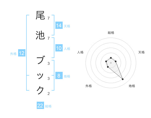 尾池 ブックさんの総格は22画の1点!