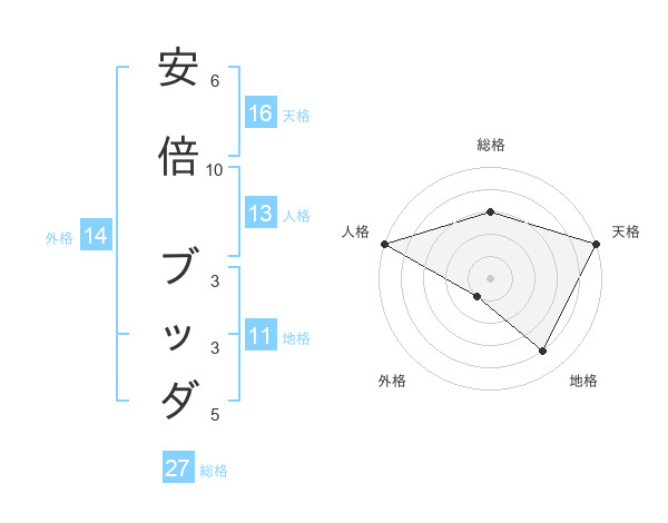 安倍 ブッダさんの天格は16画の5点!