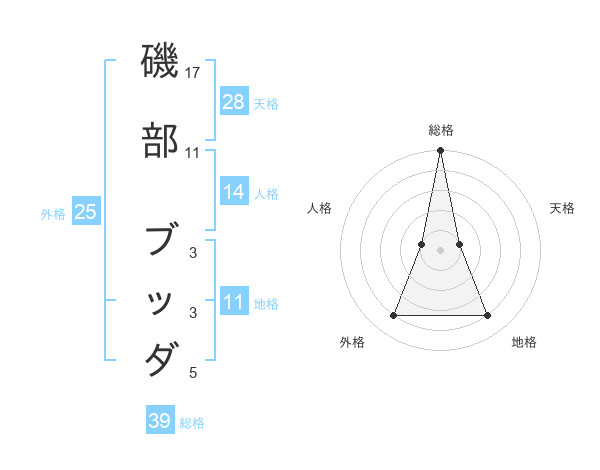 磯部 ブッダさんを姓名の画数から五運を鑑定