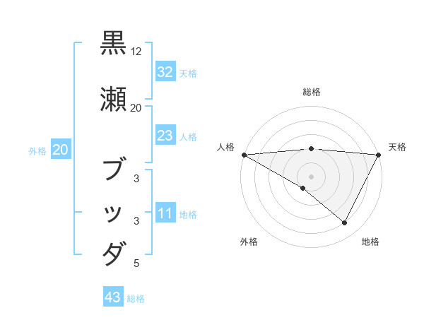 黒瀬 ブッダさんの総格は43画の2点
