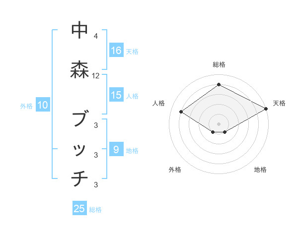 中森 ブッチさんを姓名の画数から五運を鑑定