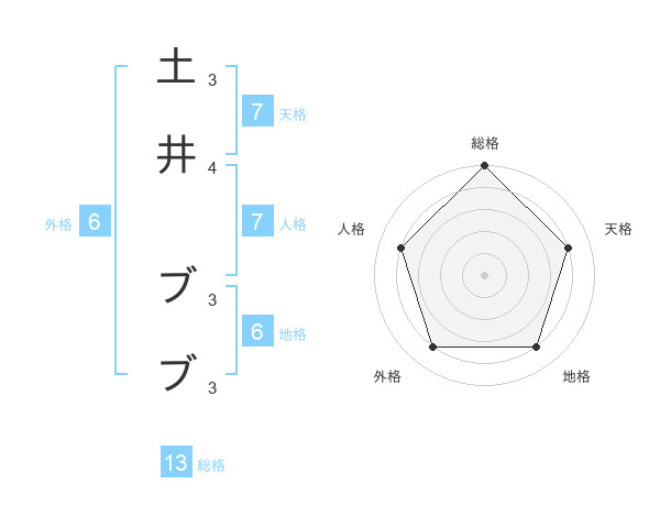 土井 ブブさんの総格は13画の5点!